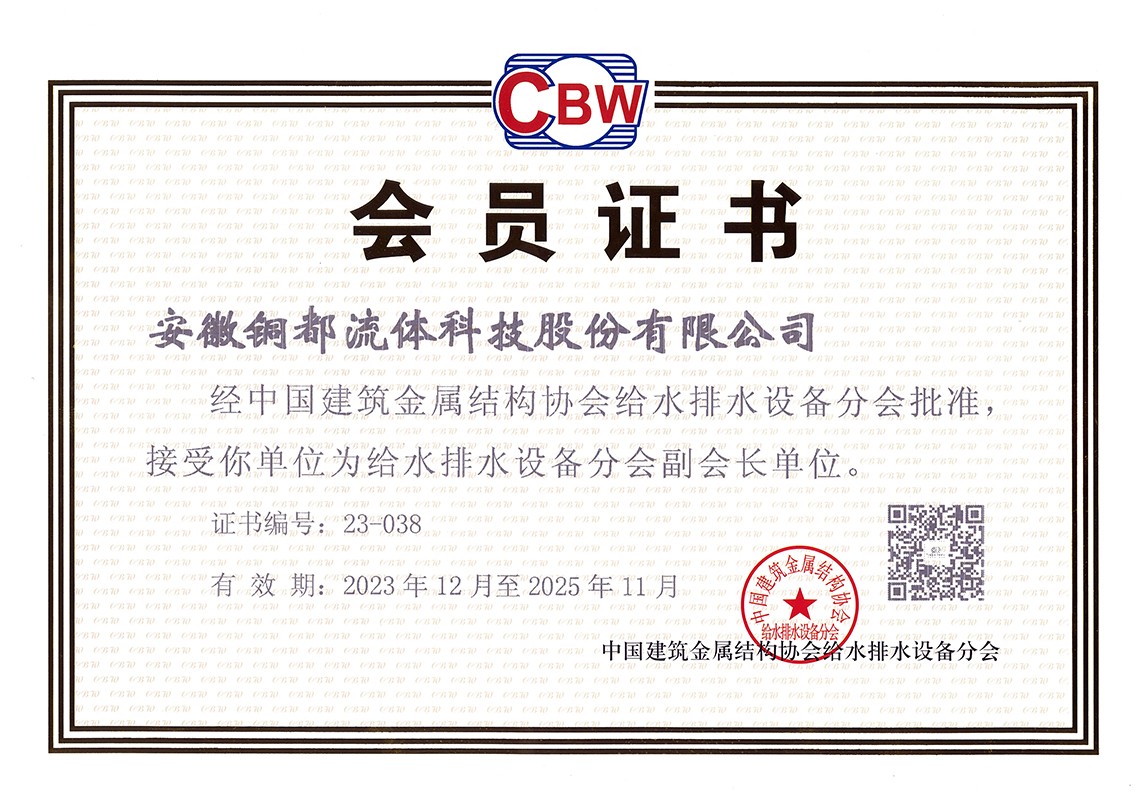 中國(guó)建筑金屬結(jié)構(gòu)協(xié)會(huì)給水排水設(shè)備分會(huì)副會(huì)長(zhǎng)單位