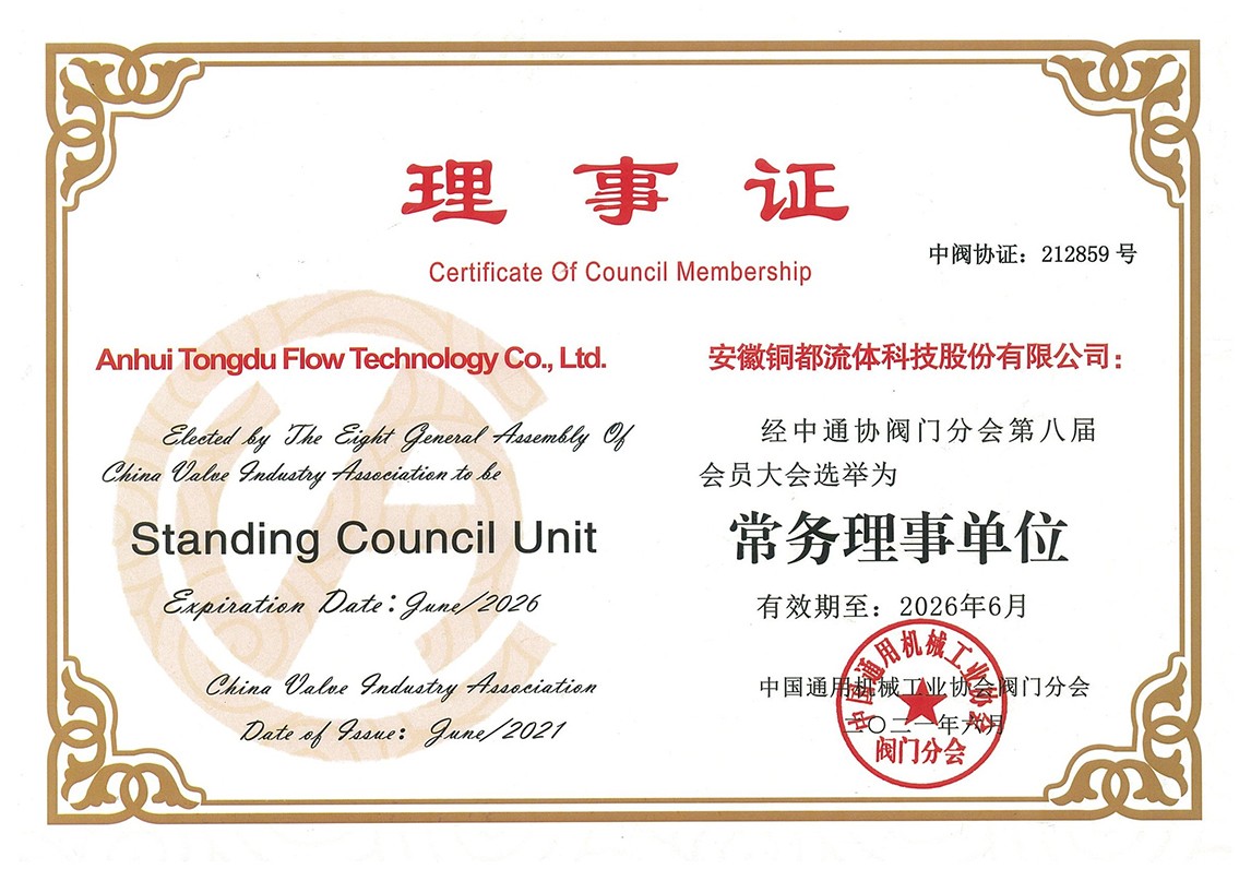 中國(guó)通用機(jī)械工業(yè)協(xié)會(huì)閥門(mén)分會(huì)常務(wù)理事單位